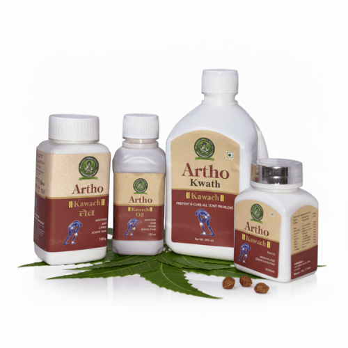 The Artho Kawach Complete Joint Care Kit is a holistic Ayurvedic solution for comprehensive joint and muscle wellness. This kit includes Artho Kawach Lep, Artho Kawach Oil, Artho Kawach Kwath, and Artho Kawach Tablets, each formulated with powerful herbal ingredients to relieve arthritis, stiffness, inflammation, and chronic pain. Together, they promote flexibility, strengthen bones, and improve joint mobility. Ideal for those seeking long-term, natural relief from joint discomfort and enhanced physical activity