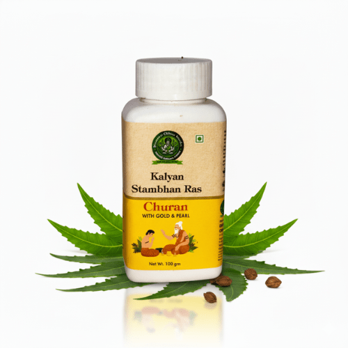 Kalyan Stambhan Ras Churan is a premium Ayurvedic formulation enriched with the goodness of gold and pearl. This herbal blend is designed to support vitality, stamina, and overall wellness. Crafted using traditional Ayurvedic principles, it helps rejuvenate the body, promote inner strength, and enhance endurance naturally. Each 100 g pack delivers a potent mix of nature’s finest ingredients for holistic health and sustained energy